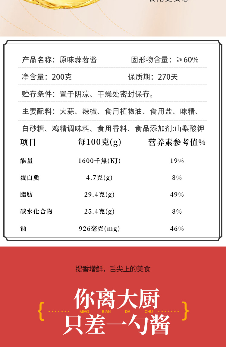 Your current location:首页 < Product < Original garlic Sauce